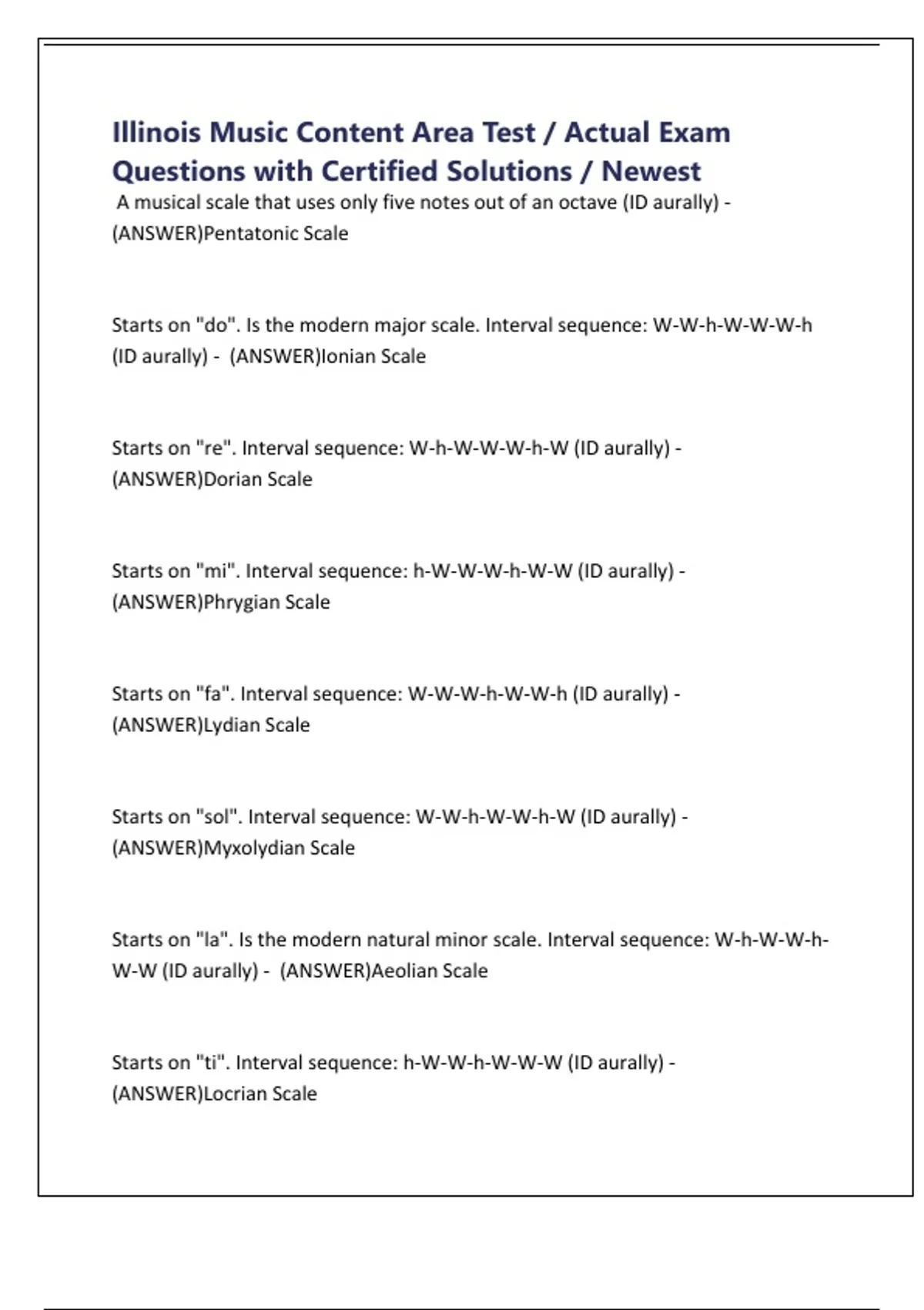 Illinois Music Content Area Test / Actual Exam Questions with Certified Solutions / Newest