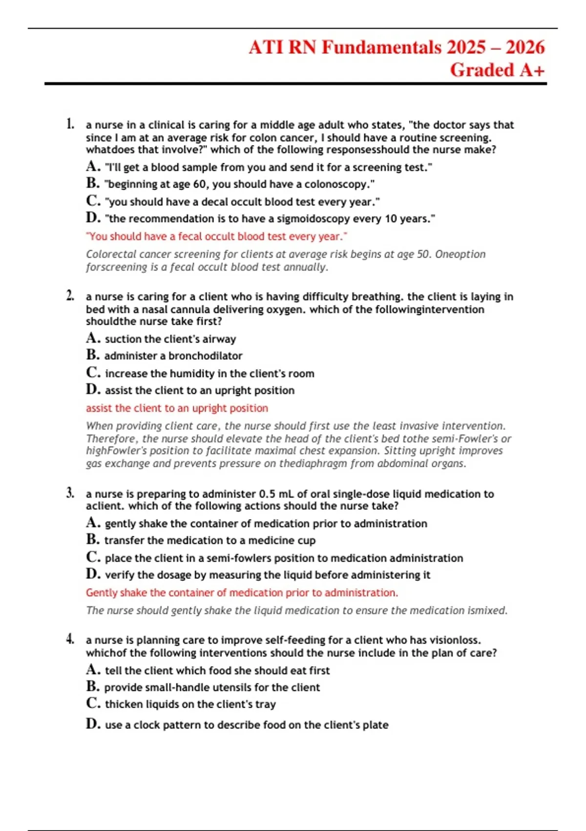 2. a nurse is caring for a client who is having difficulty breathing. the client is laying in