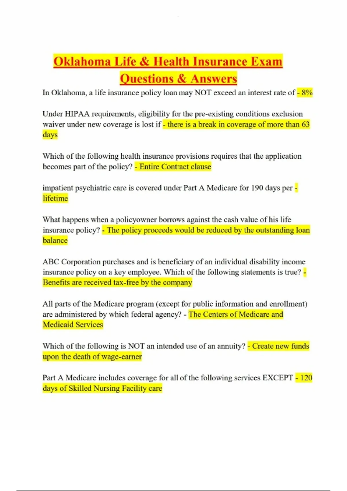 Oklahoma Life & Health Insurance Exam Questions & Answers
