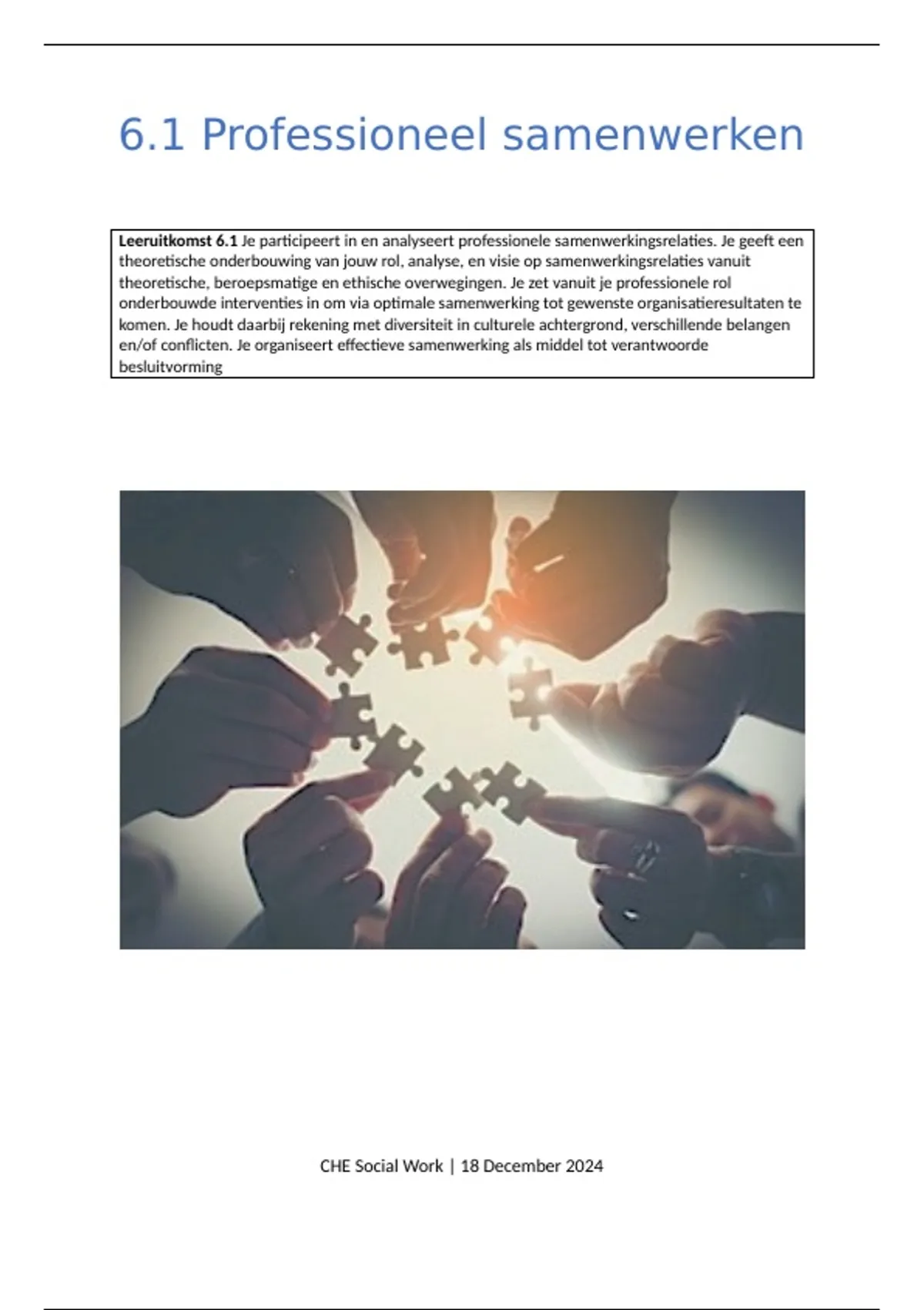 Leeruitkomst 6.1 Je participeert in en analyseert professionele samenwerkingsrelaties. Je geeft een