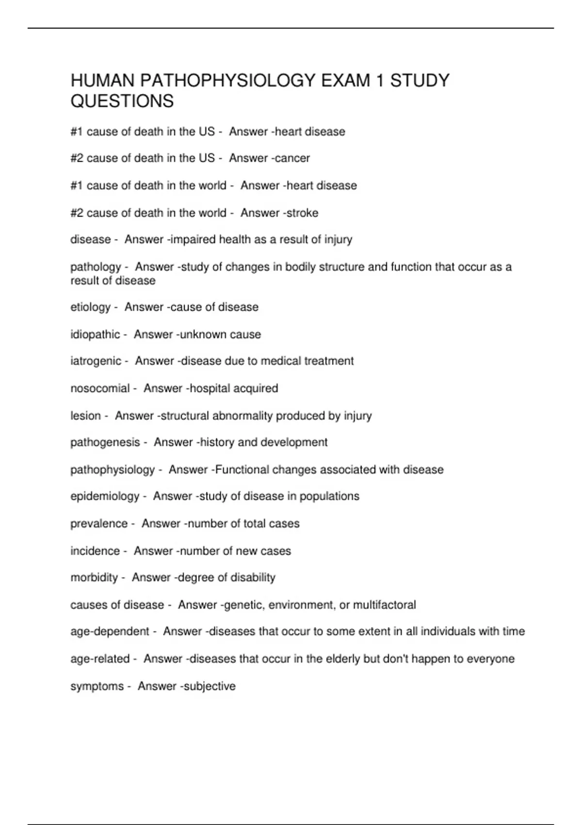 HUMAN PATHOPHYSIOLOGY EXAM 1 STUDY QUESTIONS