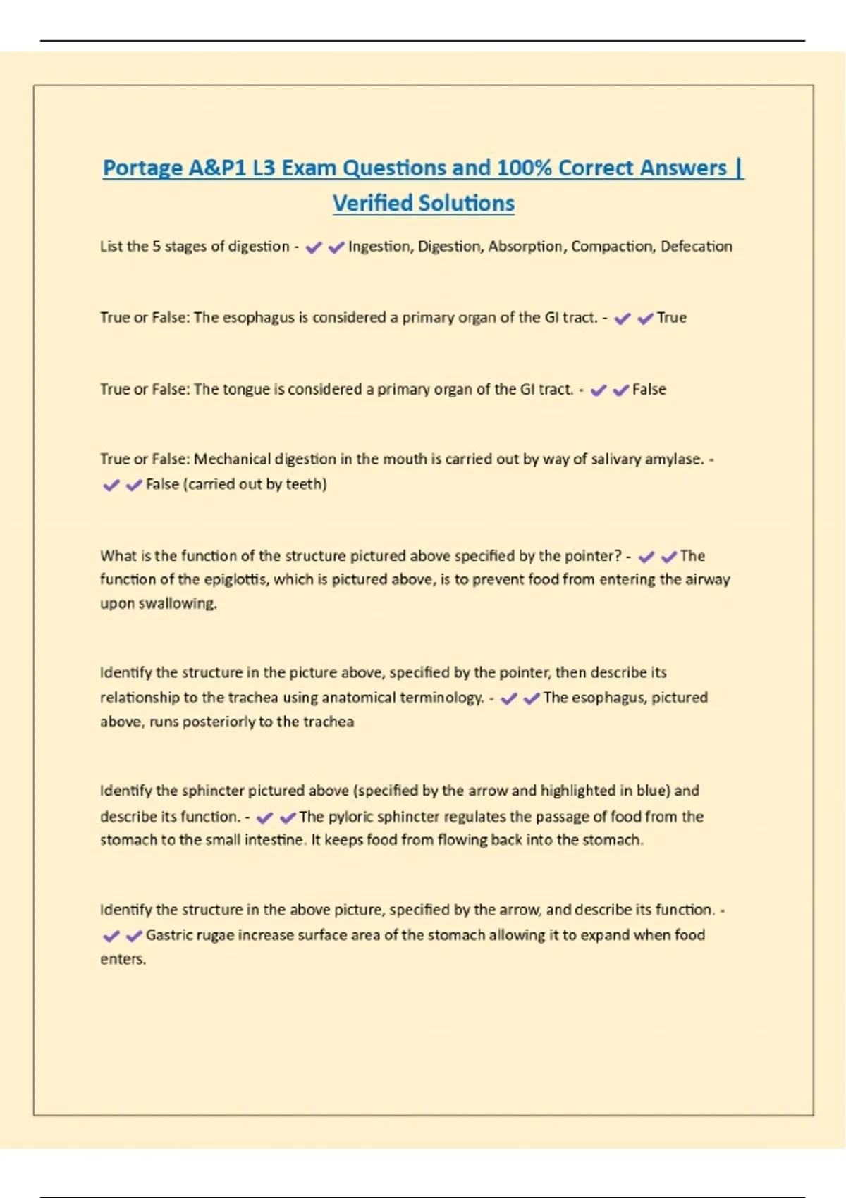 Portage A&P1 L3 Exam Questions and 100% Correct Answers | Verified Solutions