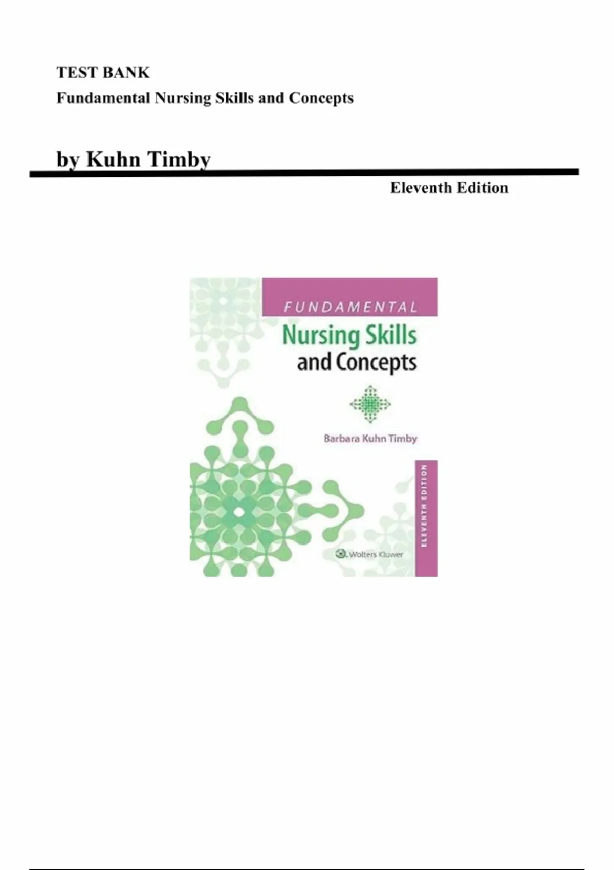 Test Bank for Fundamental Nursing Skills and Concepts Eleventh Edition (Timby, 2016), Chapter 1-41 |All Chapters