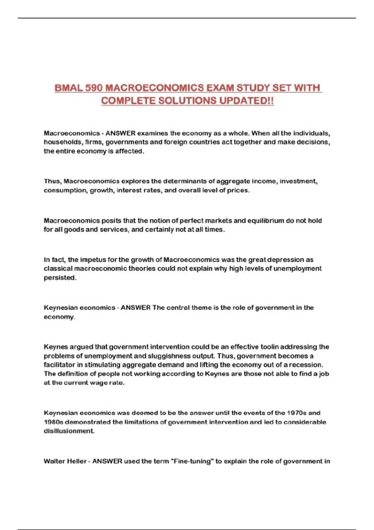 BMAL 590 MACROECONOMICS EXAM STUDY SET WITH COMPLETE SOLUTIONS UPDATED!!...