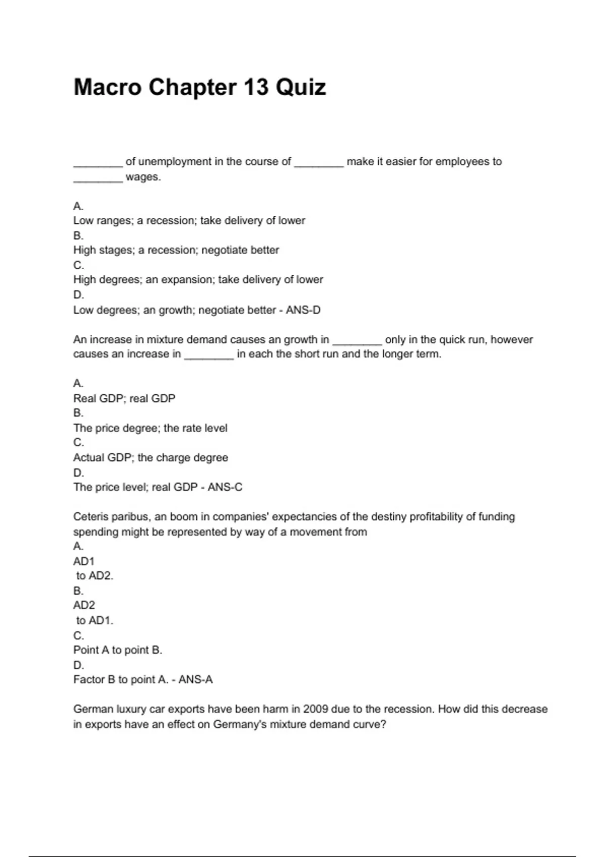 The pricelevel; real GDP - ANS-C