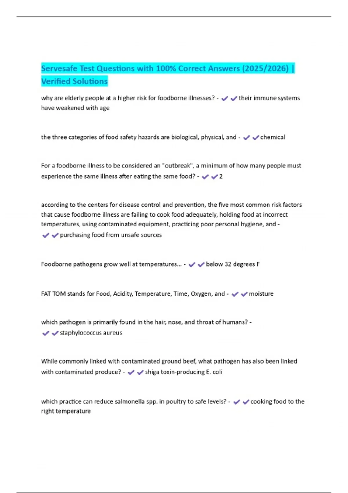 servesafe test questions with 100 correct answers