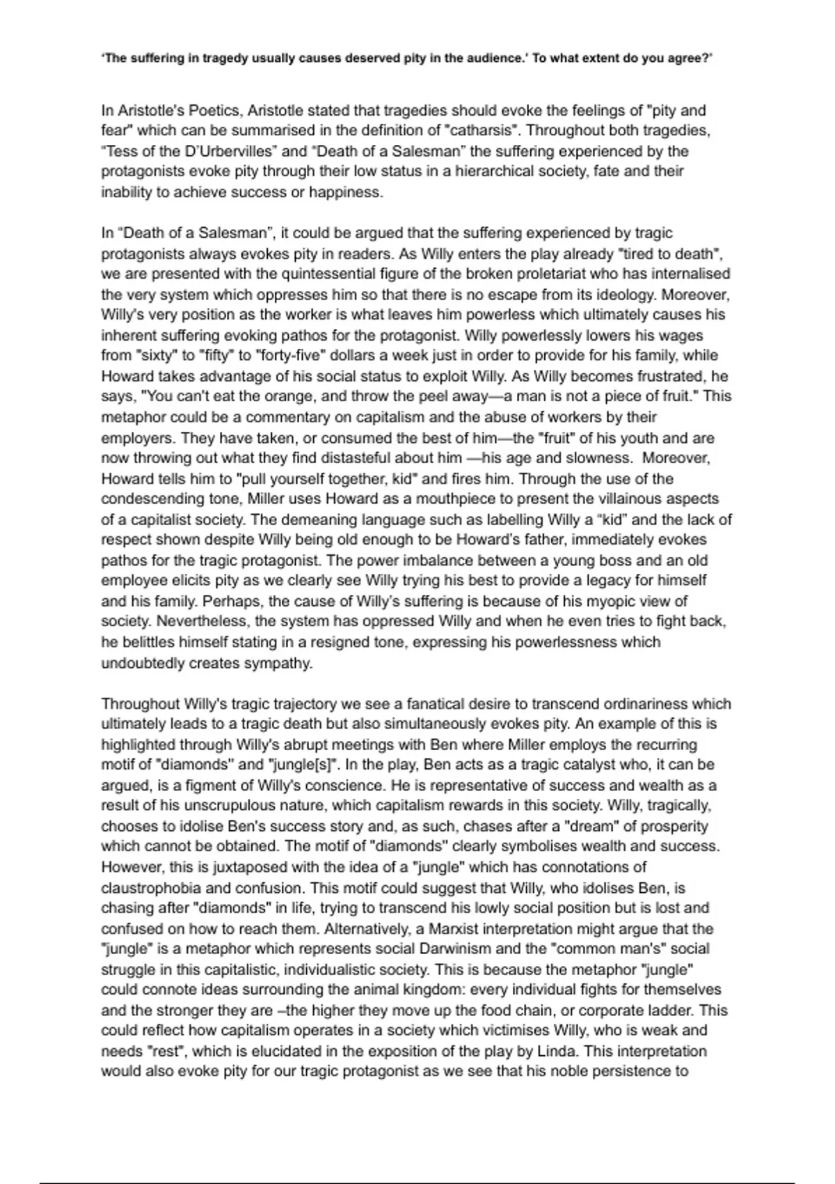 In “Death of a Salesman”, it could be argued that the suffering experienced by tragic