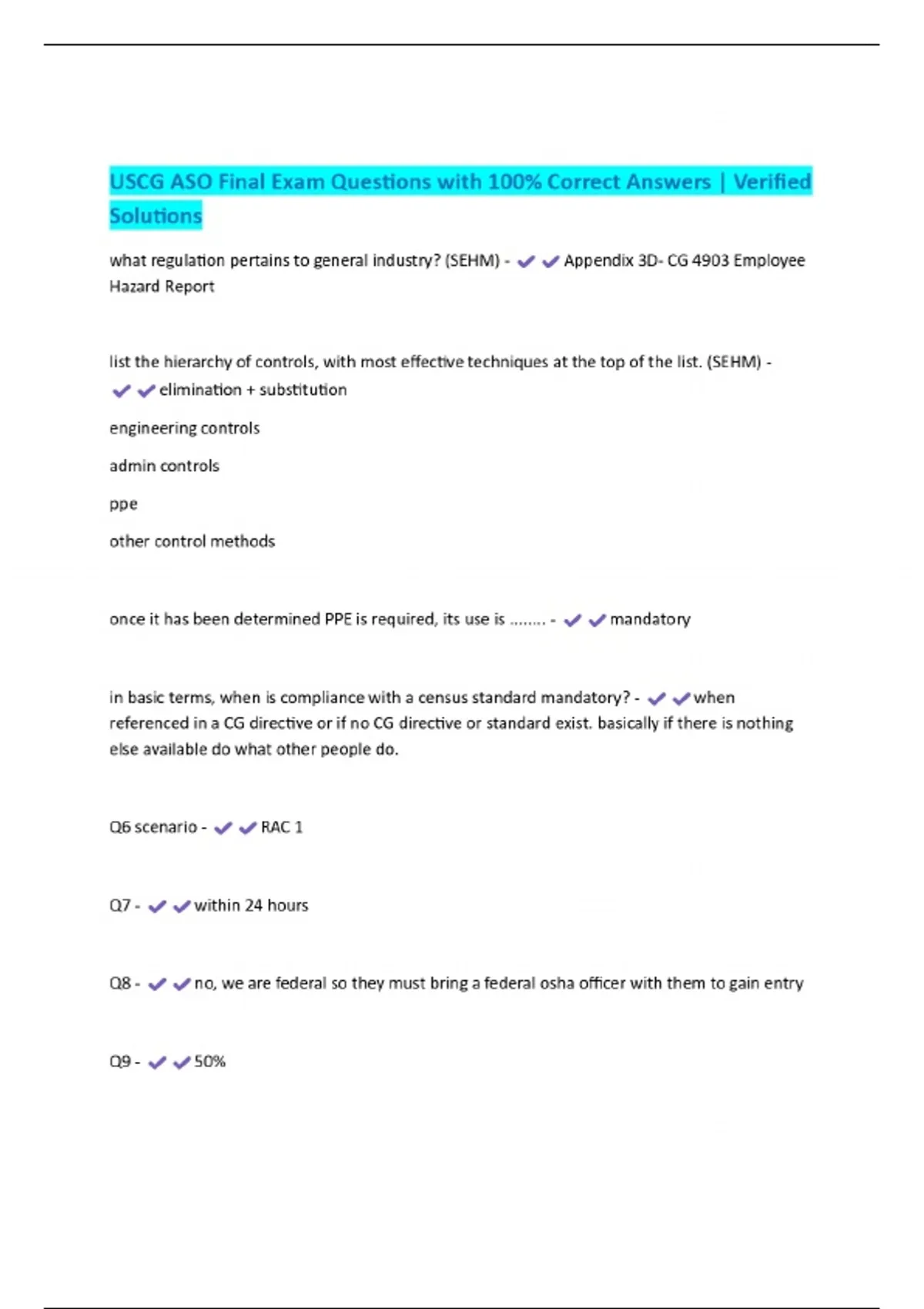 uscg aso final exam questions with 100 correct an
