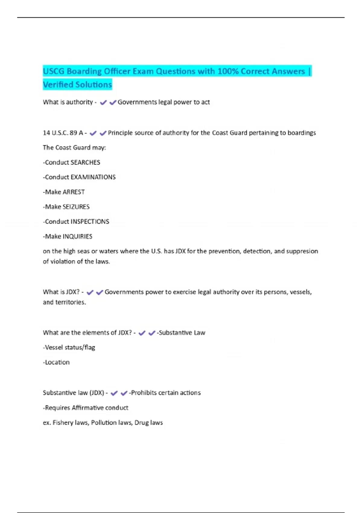 USCG Boarding Officer Exam Questions with 100% Correct Answers | Verified Solutions