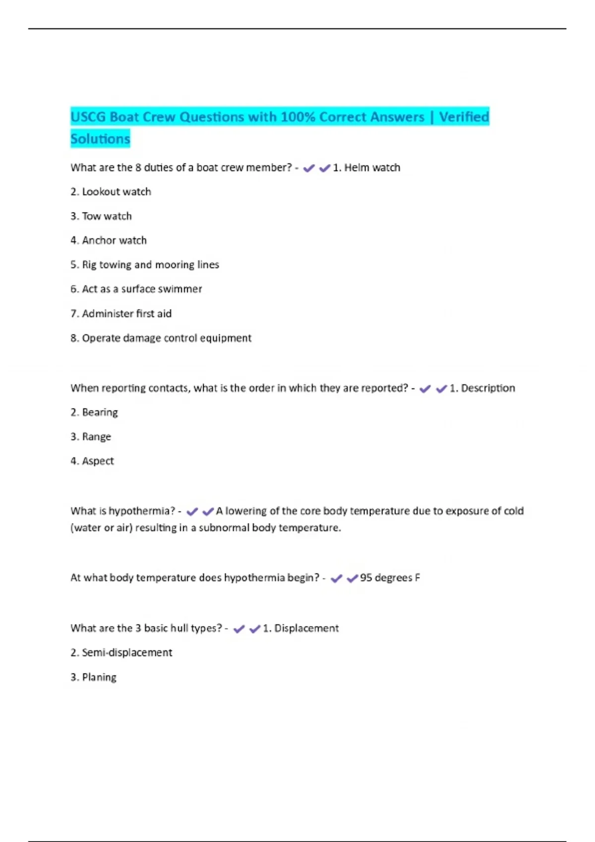 USCG Boat Crew Questions with 100% Correct Answers | Verified Solutions