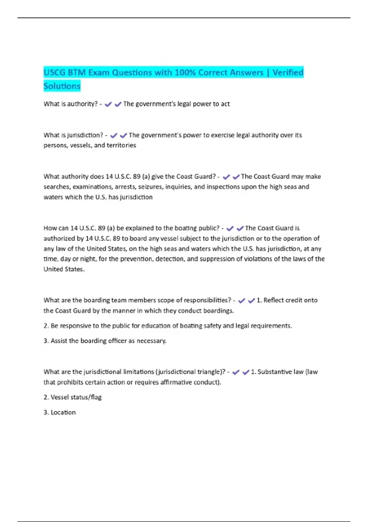 USCG BTM Exam Questions with 100% Correct Answers | Verified Solutions