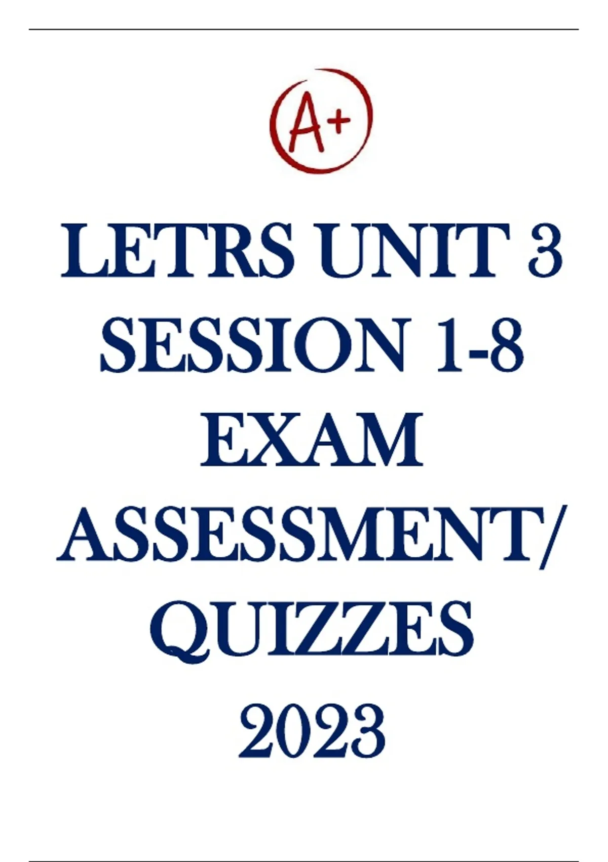 , LETRS Unit 3 Session 1-8 Latest Exam