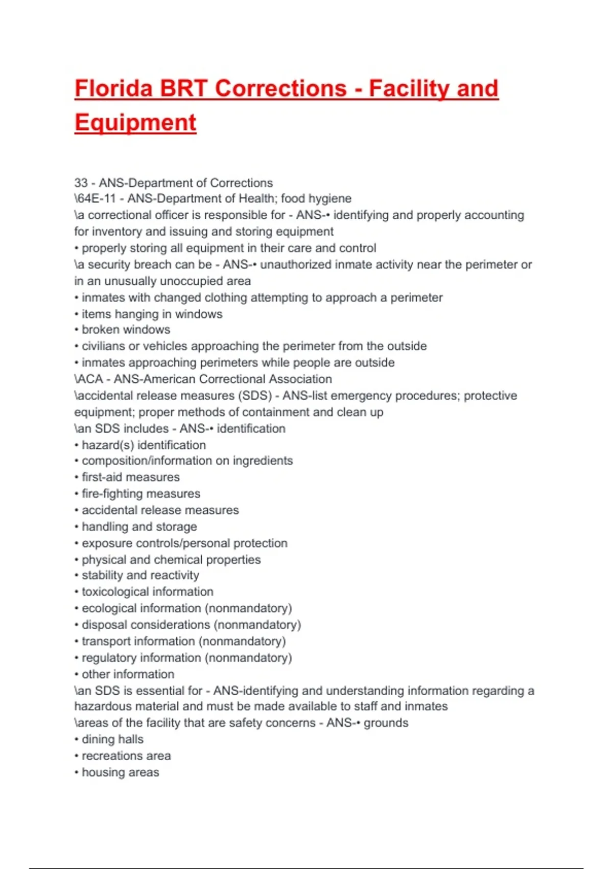 Florida BRT Corrections - Facility and