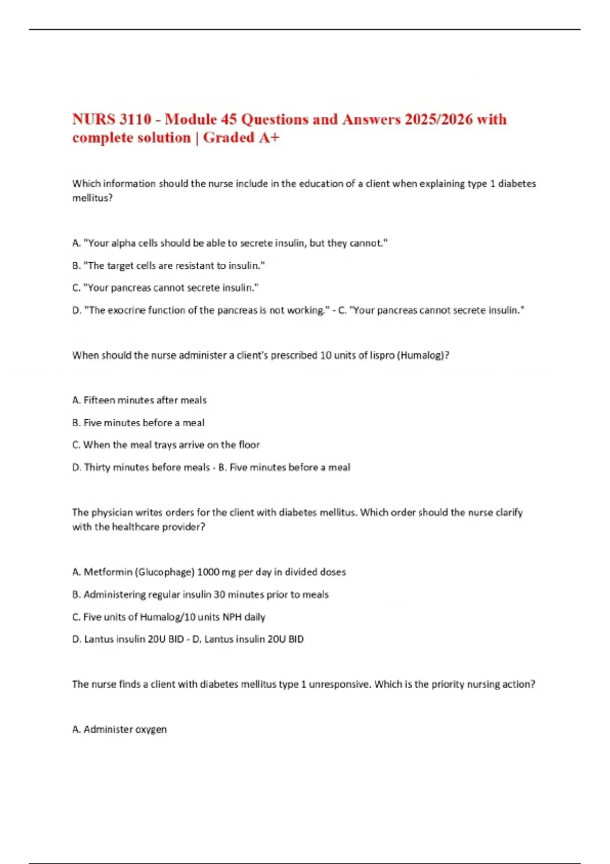 NURS 3110 - Module 45 Questions and Answers 2025/2026 with complete solution | Graded A+
