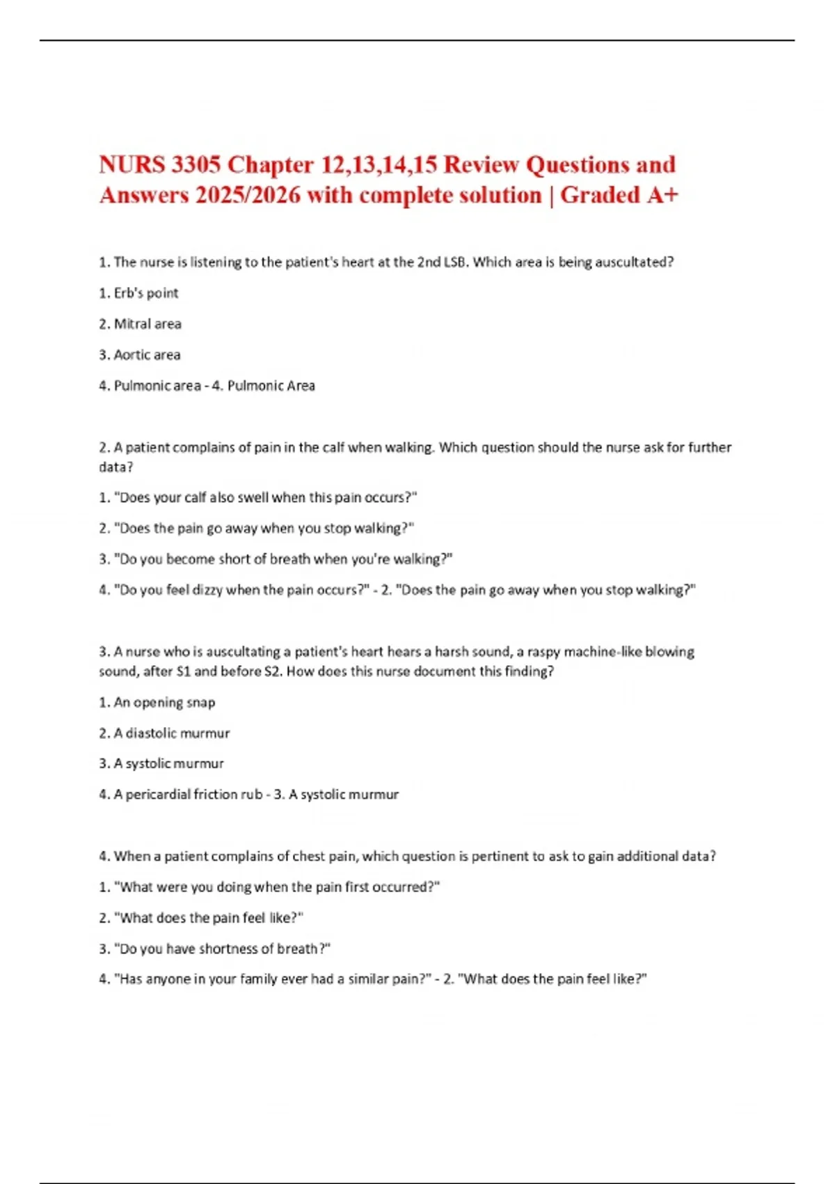 NURS 3305 Chapter 12,13,14,15 Review Questions and Answers 2025/2026 with complete solution | Graded A+