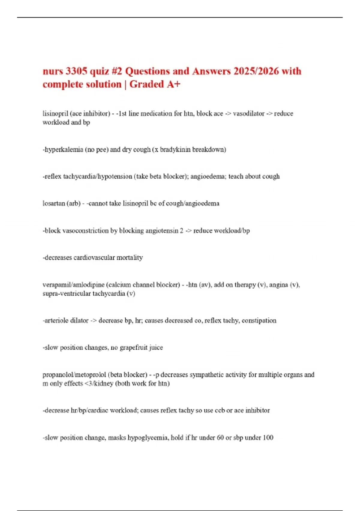 nurs 3305 quiz #2 Questions and Answers 2025/2026 with complete solution | Graded A+