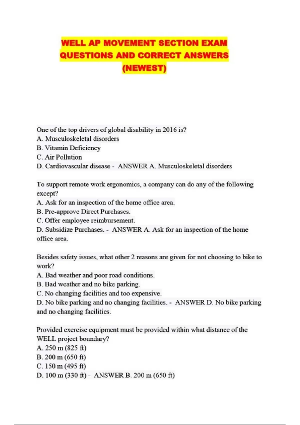 WELL AP MOVEMENT SECTION EXAM QUESTIONS AND CORRECT ANSWERS (NEWEST)....