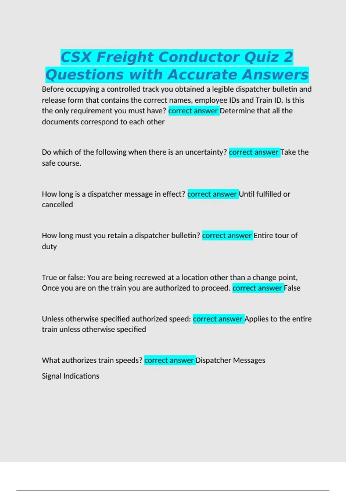 What authorizes train speeds? correct answer Dispatcher Messages