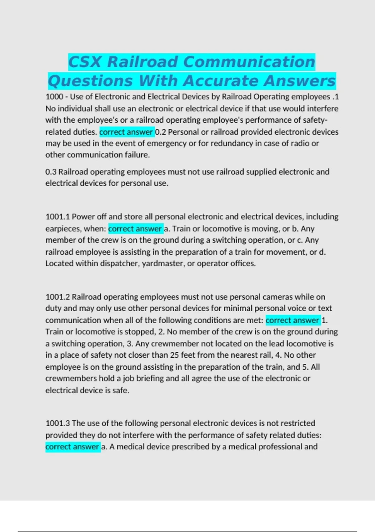 related duties. correct answer 0.2 Personal or railroad provided electronic devices