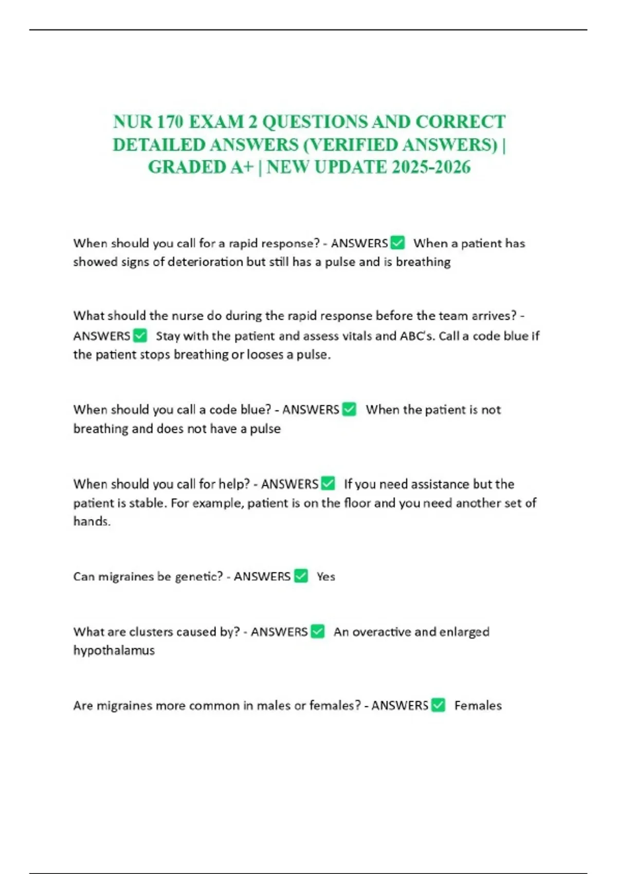 NUR 170 BUNDLED ACTUAL EXAM QUESTIONS AND CORRECT DETAILED ANSWERS (VERIFIED ANSWERS) | A+ GUARANTEE | NEW 2025-2026 UPDATE (Galen College of Nursing)