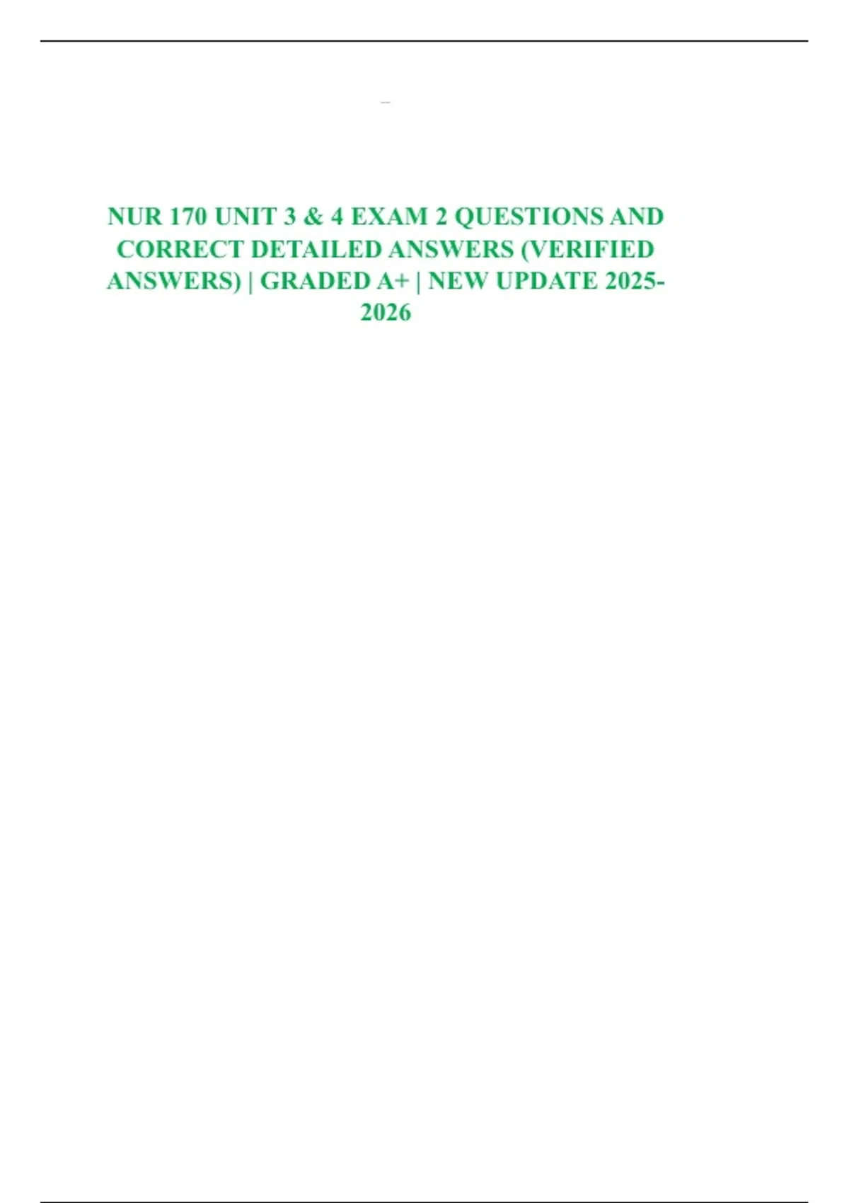 NUR 170 UNIT 3 & 4 EXAM 2 QUESTIONS AND