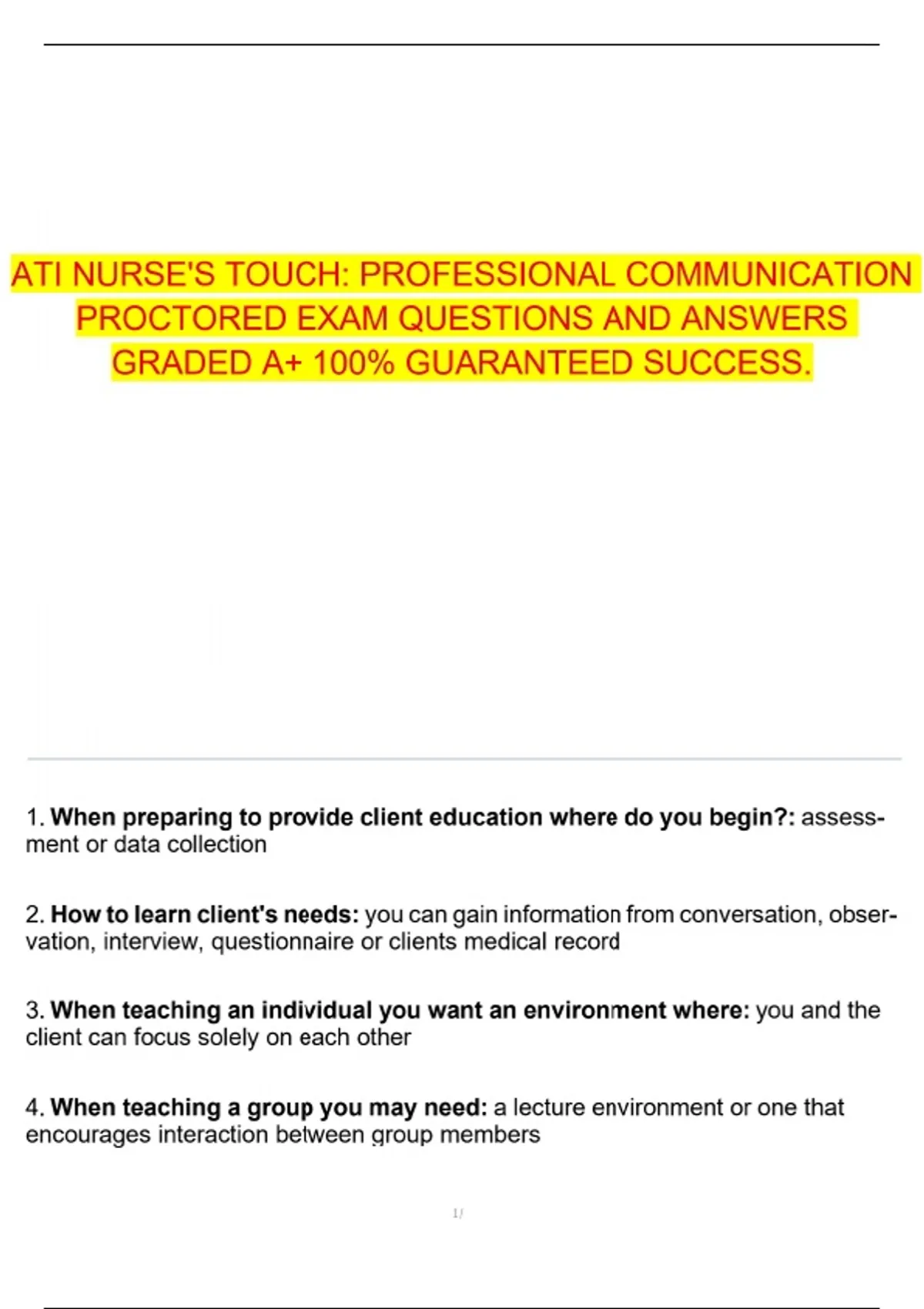 ATI NURSE'S TOUCH: PROFESSIONAL COMMUNICATION PROCTORED EXAM QUESTIONS AND ANSWERS GRADED A+ 100% GUARANTEED SUCCESS. ATI Nurse's Touch exam Professional communication exam questions ATI proctored exam answers Nurse's Touch exam prep ATI exam success tips Professional communication ATI ATI exam questions and answers Nursing communication skills test Guaranteed success ATI exam 100% pass ATI Nurse's Touch ATI test study guide Nursing proctored exam review ATI communication exam prep ATI professional communication guide Nurse's Touch test materials ATI exam help online Nursing exam practice questions ATI success plan Nurse's Touch communication review ATI exam with answers ATI Nurse's Touch FAQs ATI testing strategies Proctored exam tips for nurses ATI course resources Professional communication exam tips ATI exam study materials Nurse's Touch practice exam