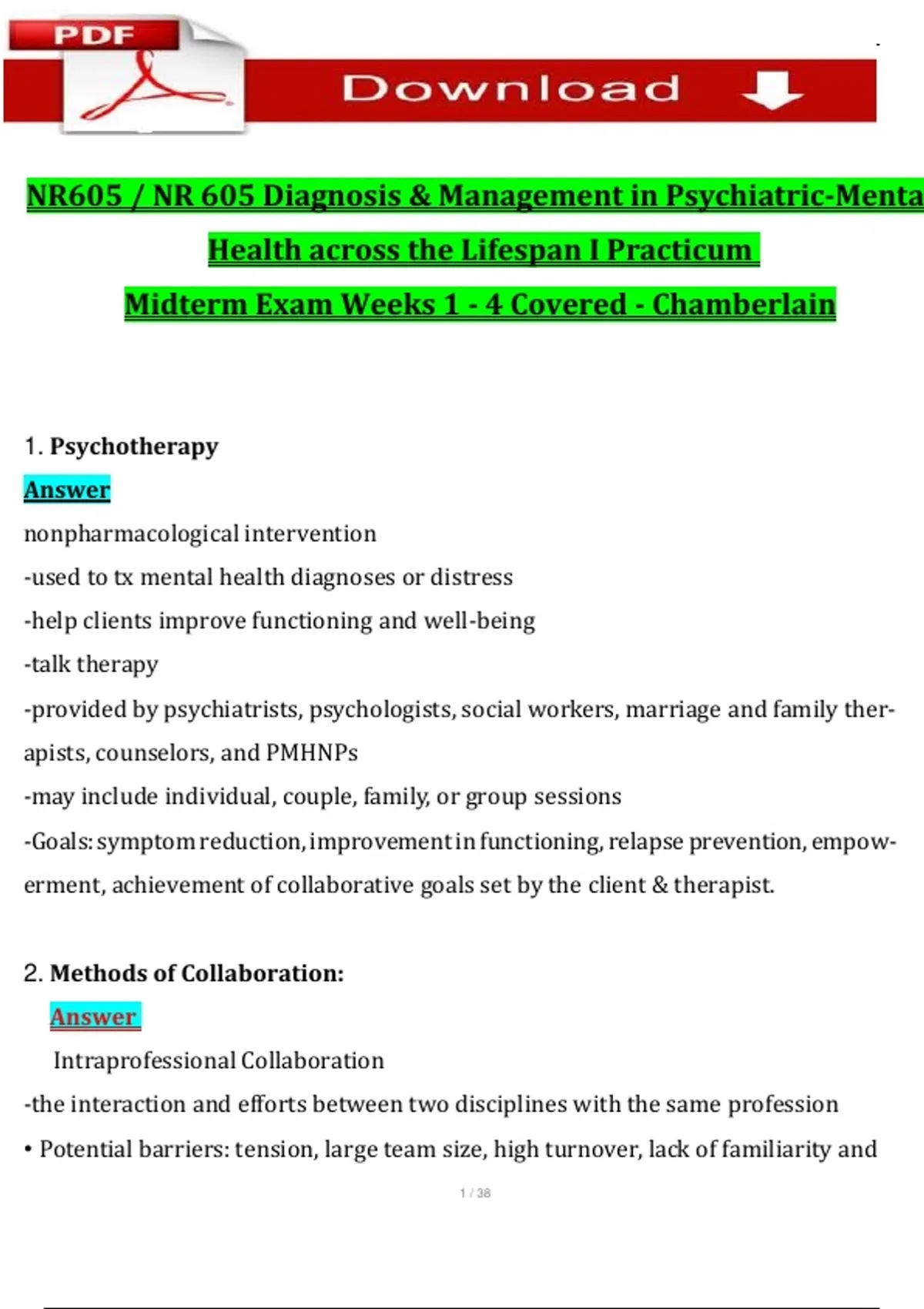 Midterm Exam Weeks 1 - 4 Covered - Chamberlain