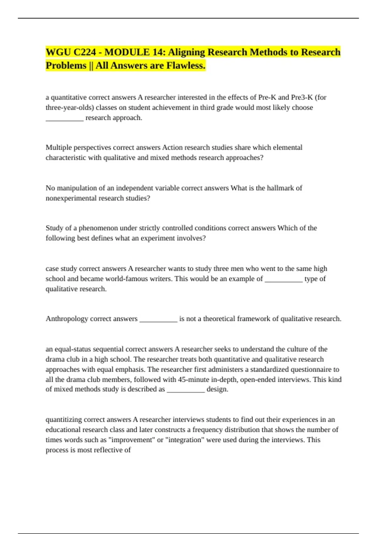WGU C224 - MODULE 14: Aligning Research Methods to Research Problems || All Answers are Flawless.
