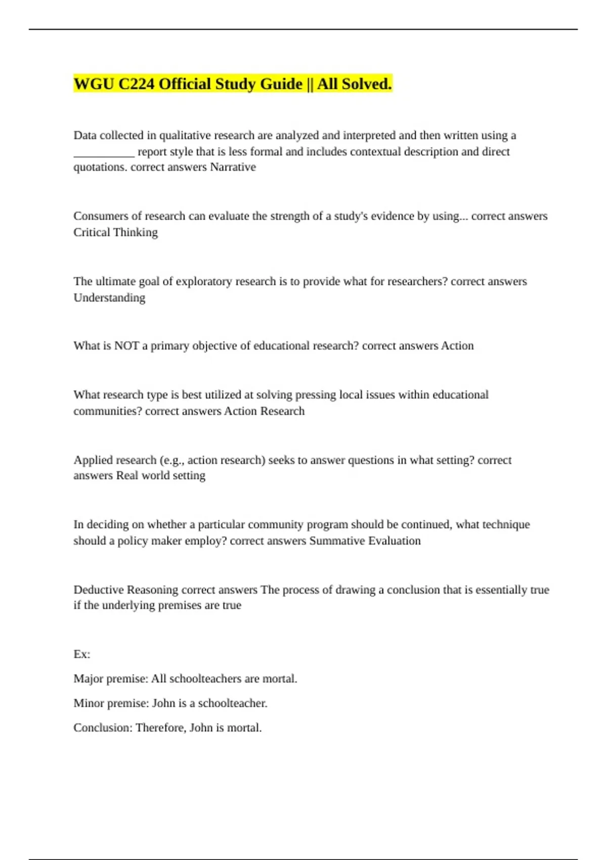 Deductive Reasoning correct answers The process of drawing a conclusion that is essentially true