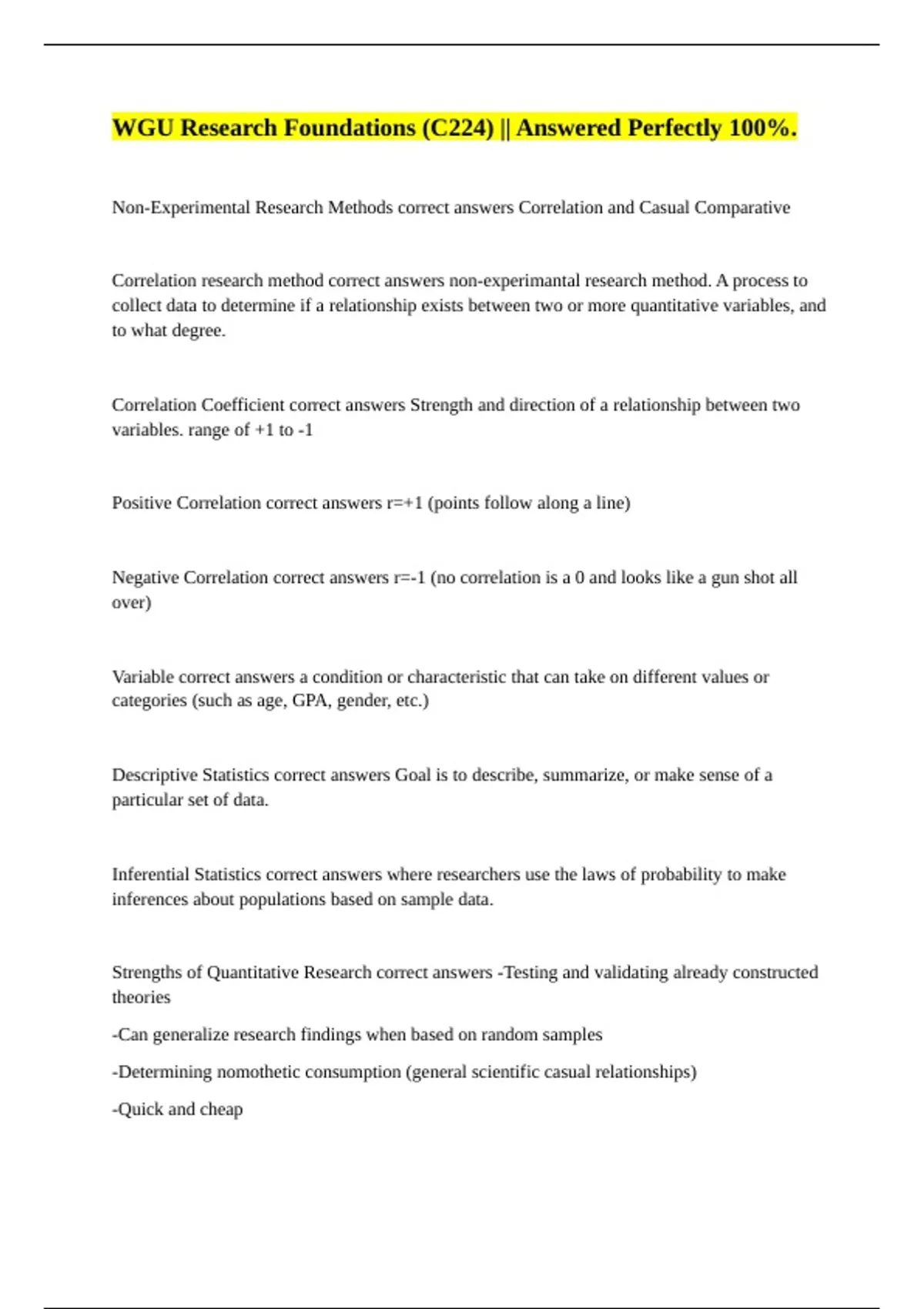 Non-Experimental Research Methods correct answers Correlation and Casual Comparative