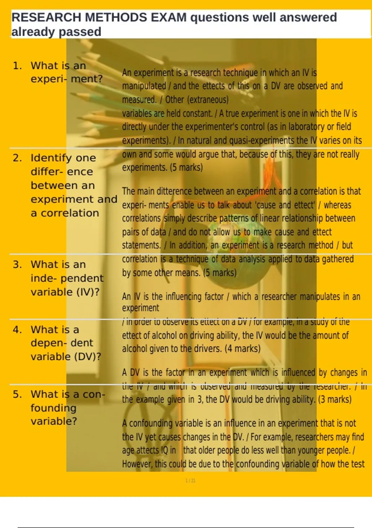 , RESEARCH METHODS EXAM questions well answered