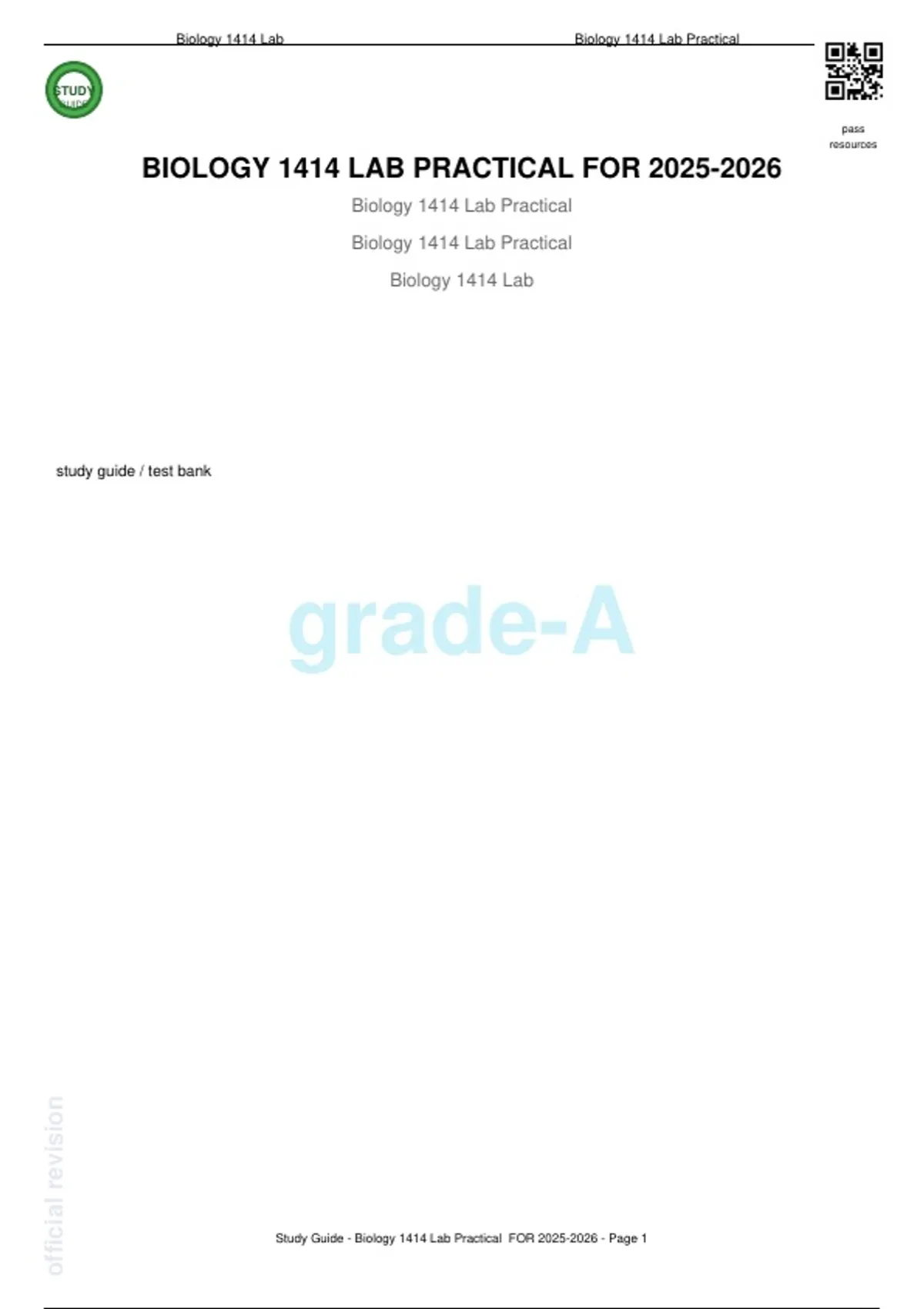 Study Guide - Biology 1414 Lab Practical FOR 2025-2026 - Page 1