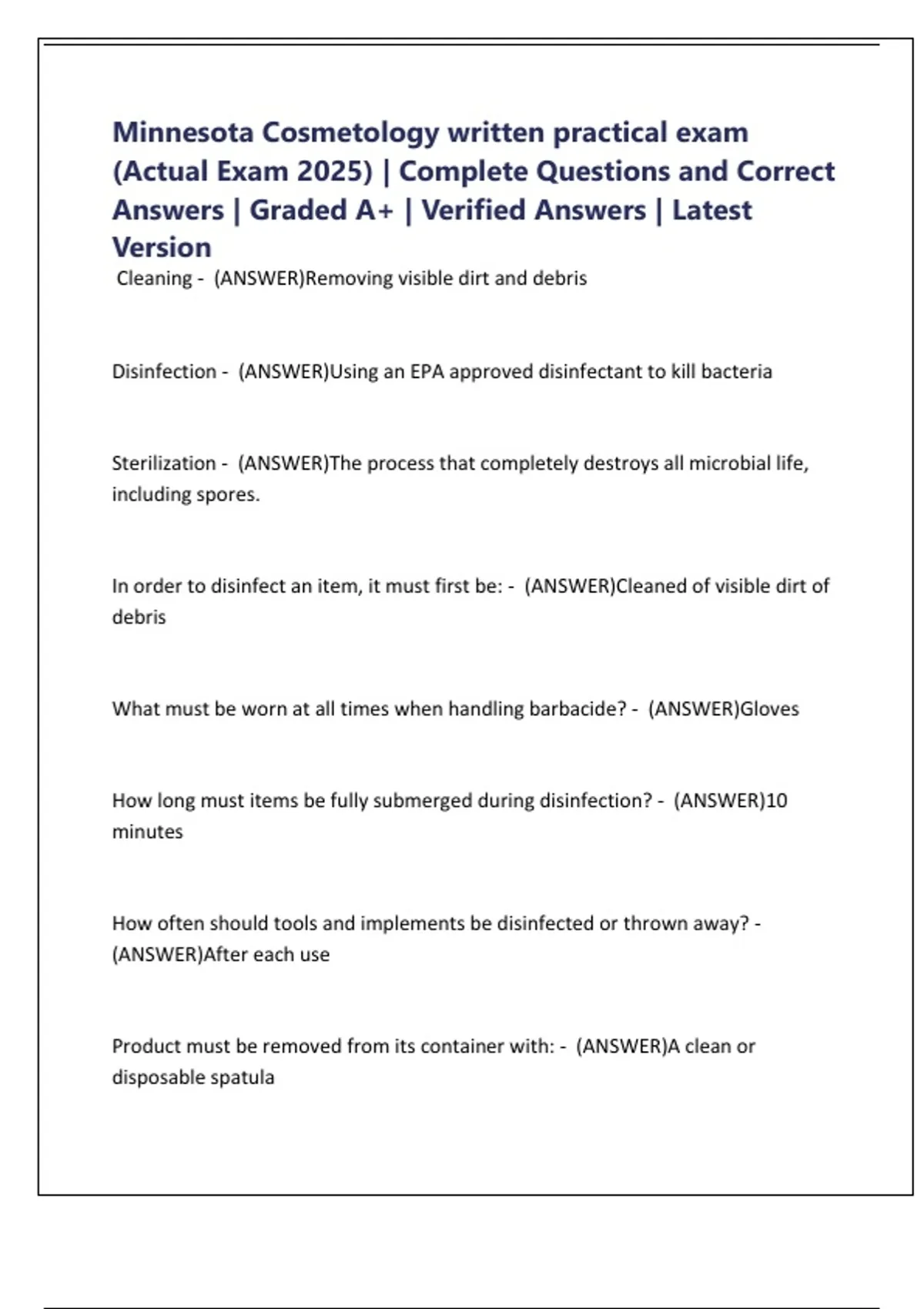 Minnesota Cosmetology written practical exam