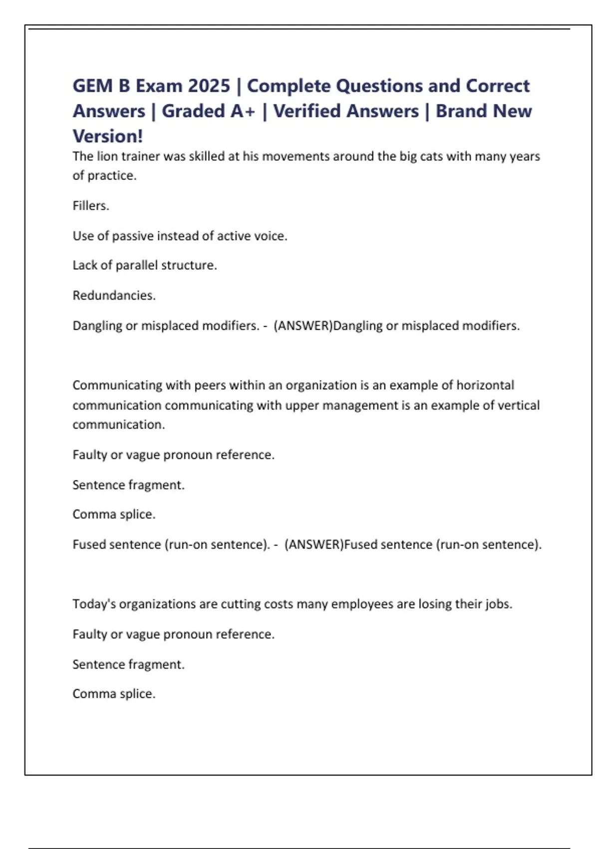 GEM B Exam 2025 | Complete Questions and Correct Answers | Graded A+ | Verified Answers | Brand New Version!