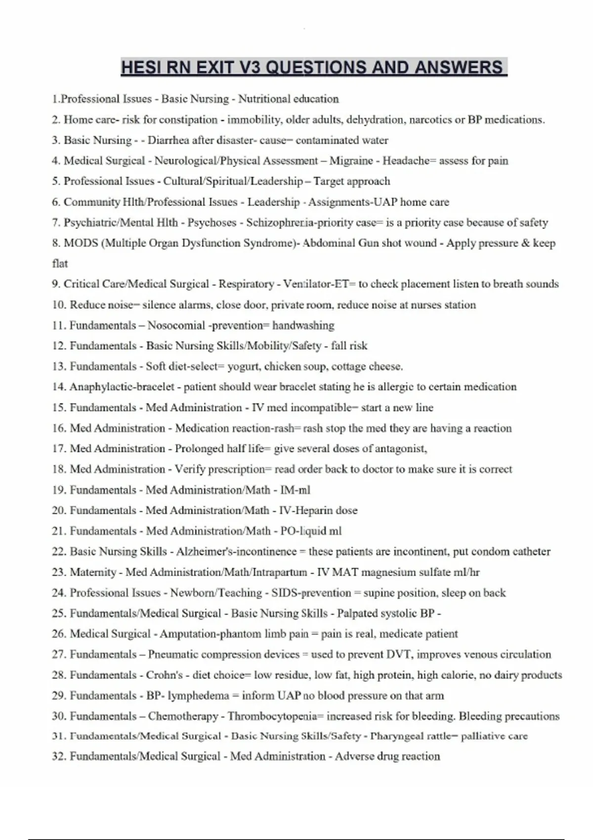 HESI RN EXIT V3 QUESTIONS AND ANSWERS HESI RN EXIT V3 QUESTIONS AND ANSWERS