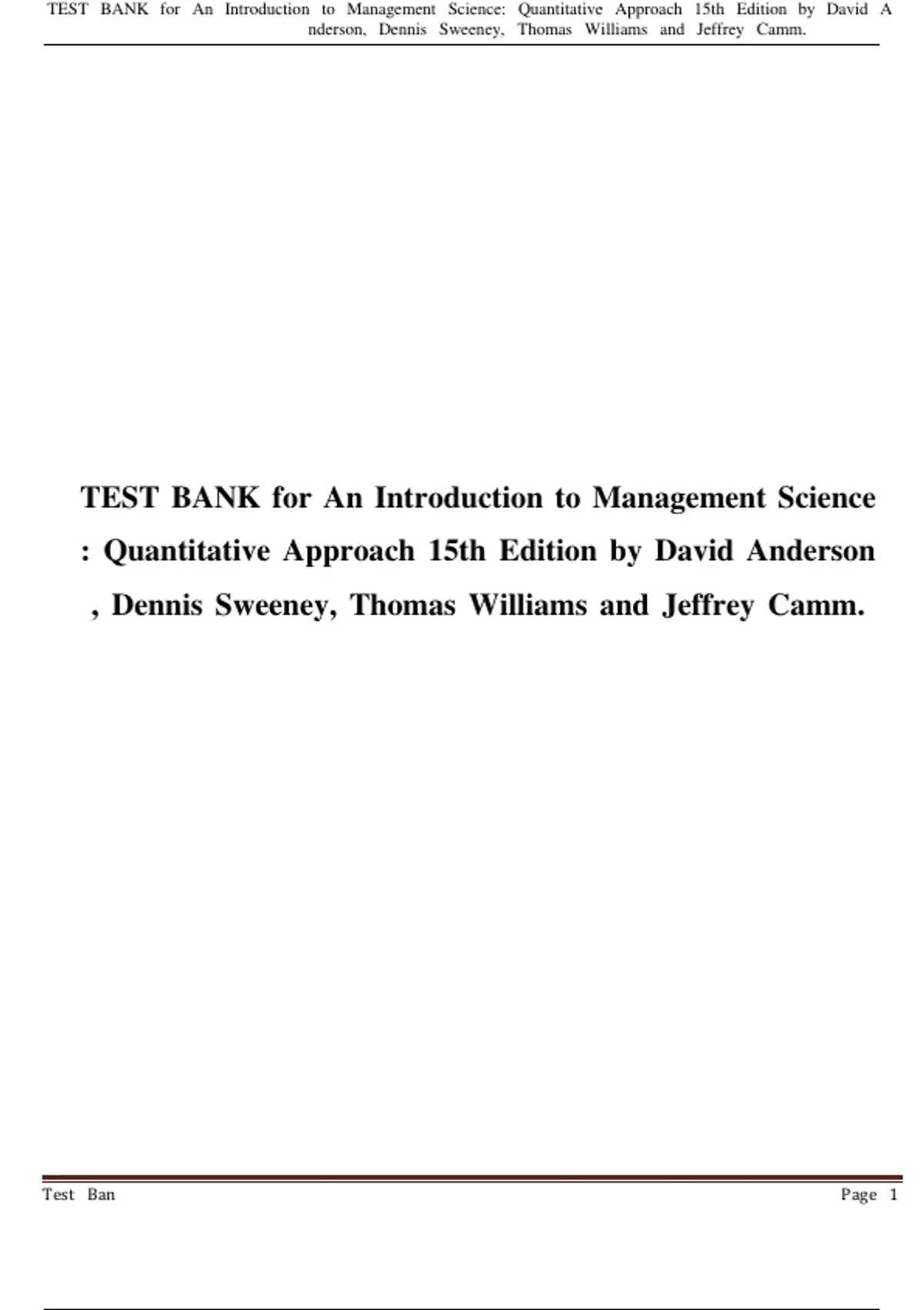 , TESTy2BANKy2fory2Any2Introductiony2toy2Managementy2Science:y2Quantitativey2Approachy215thy2Editiony2byy2Davidy2A