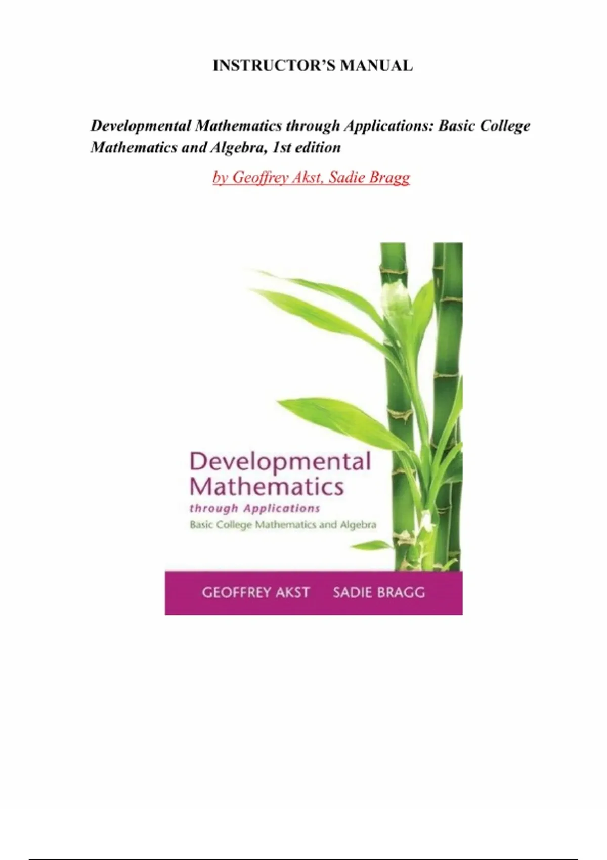 Developmental Mathematics through Applications – 1st Edition (Geoffrey Akst) | Instructor’s Resource Manual, All Chapters