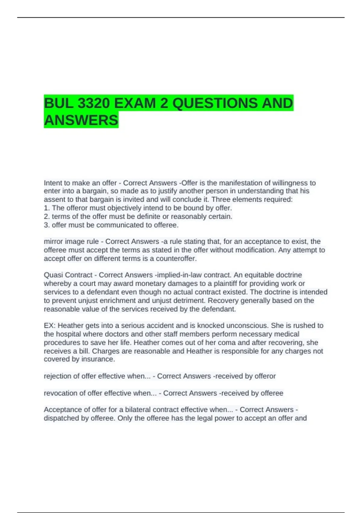 BUL 3320 EXAM 2 QUESTIONS AND ANSWERS
