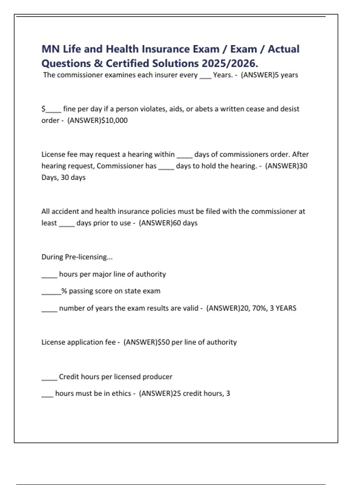 The commissioner examines each insurer every ___ Years. - (ANSWER)5 years