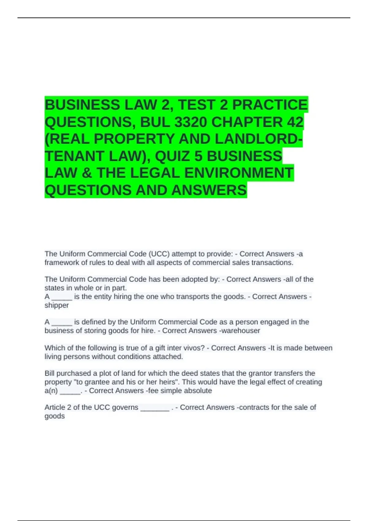 BUSINESS LAW 2, TEST 2 PRACTICE