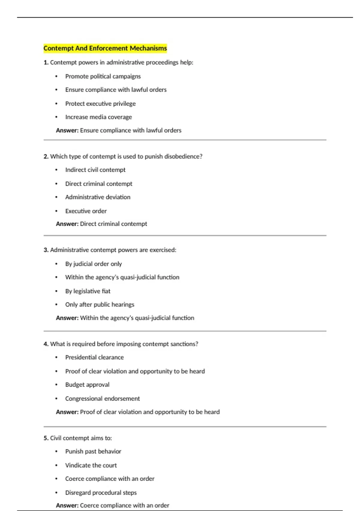 5. Civil contempt aims to: