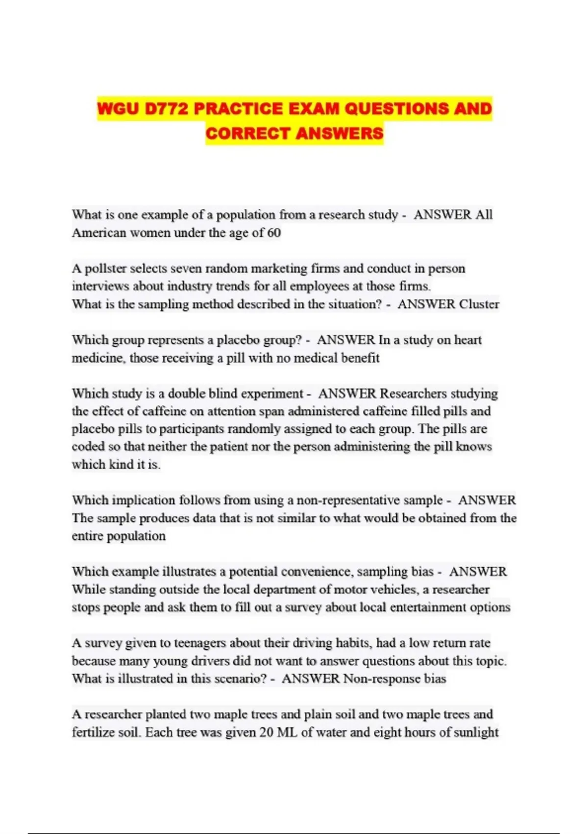 WGU D772 /D772 PACKAGED EXAMS: QUESTIONS AND CORRECT ANSWERS