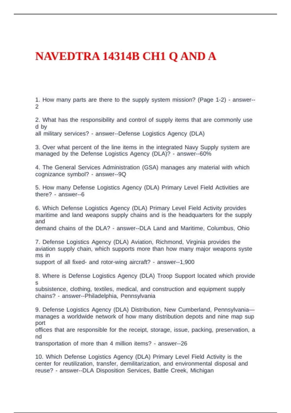 10.bjWhichbjDefensebjLogisticsbjAgencybj(DLA)bjPrimarybjLevelbjFieldbjActivitybjisbjthe