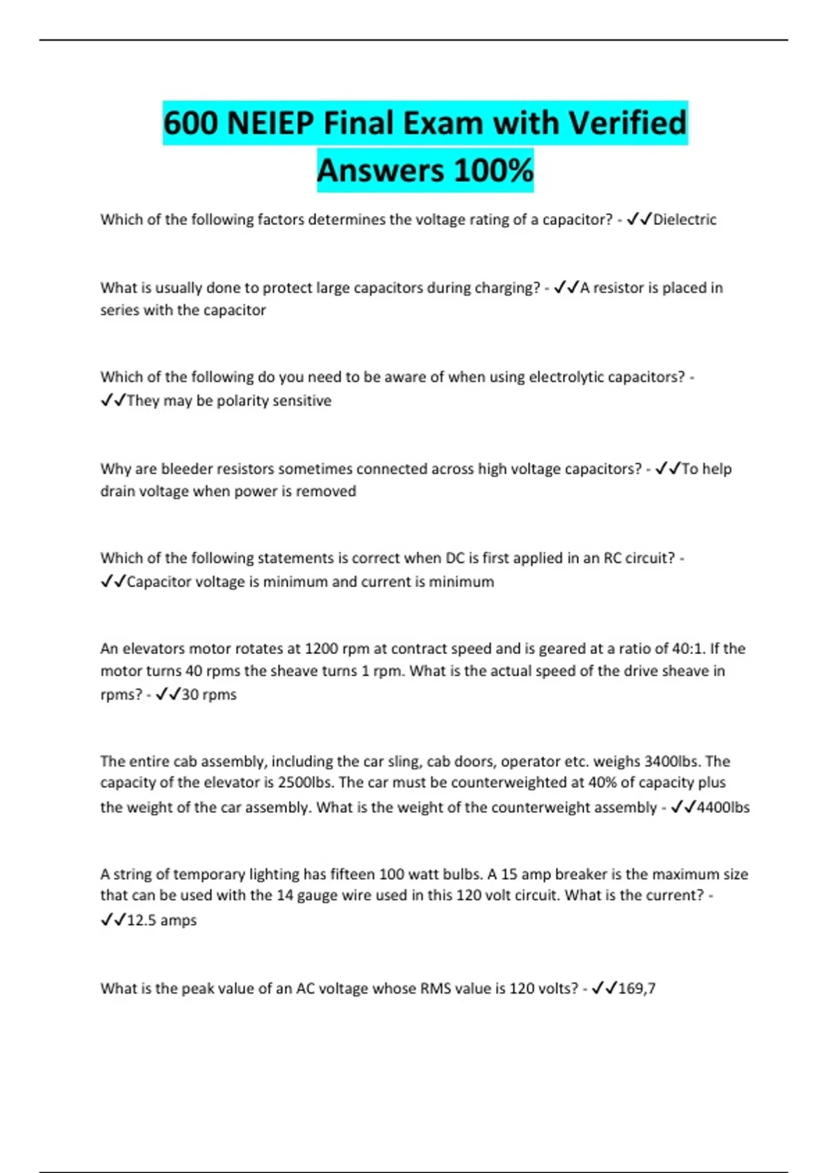 600 NEIEP Final Exam with Verified Answers 100%