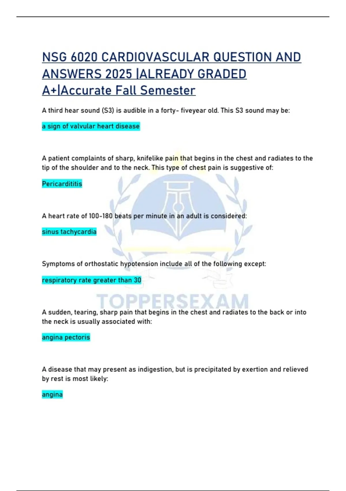NSG 6020 CARDIOVASCULAR QUESTION AND