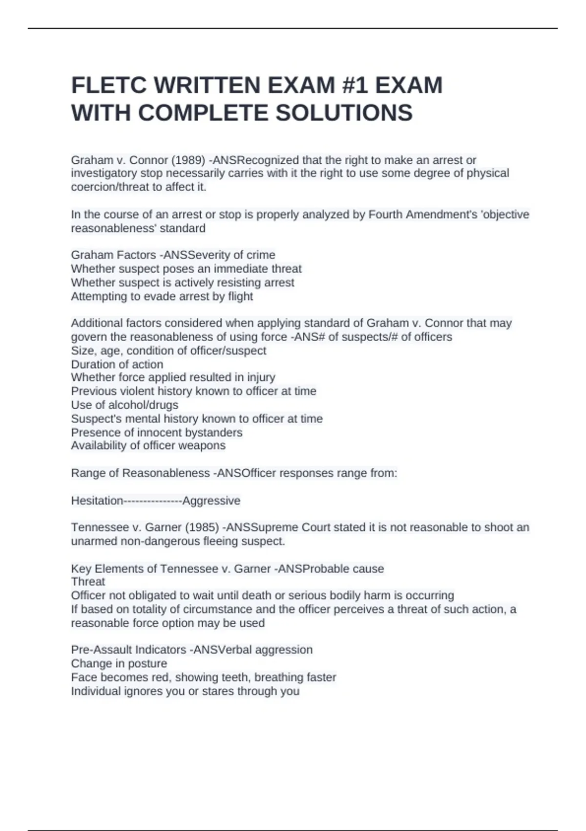 FLETC WRITTEN EXAM #1 EXAM