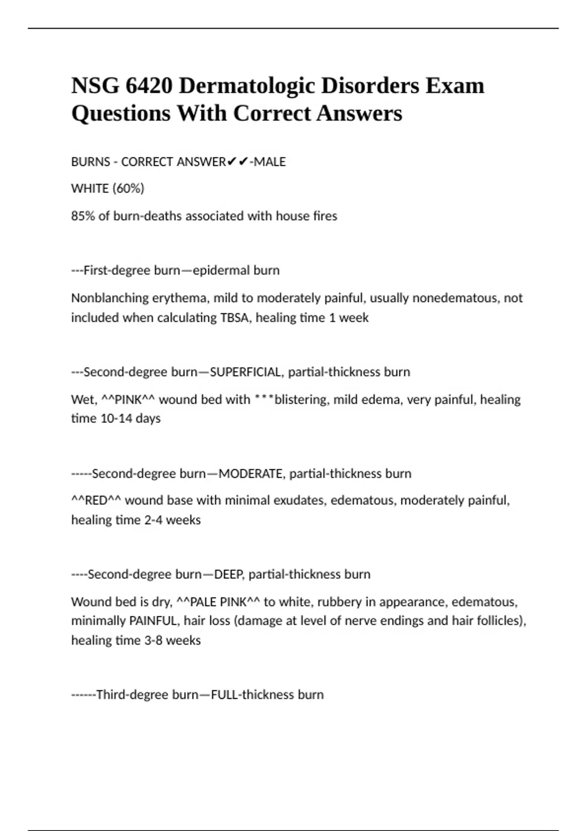 BURNS - CORRECT ANSWER✔✔-MALE