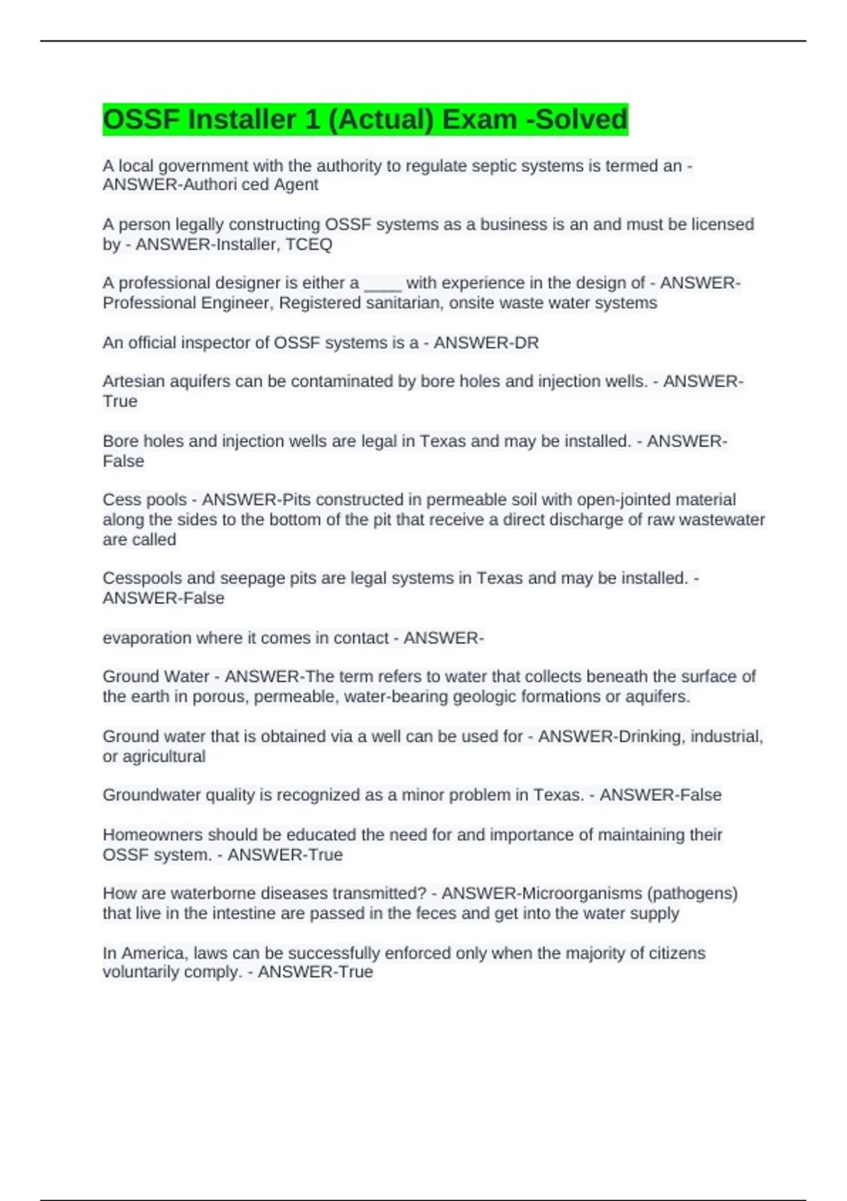 OSSF Installer 1 (Actual) Exam -Solved