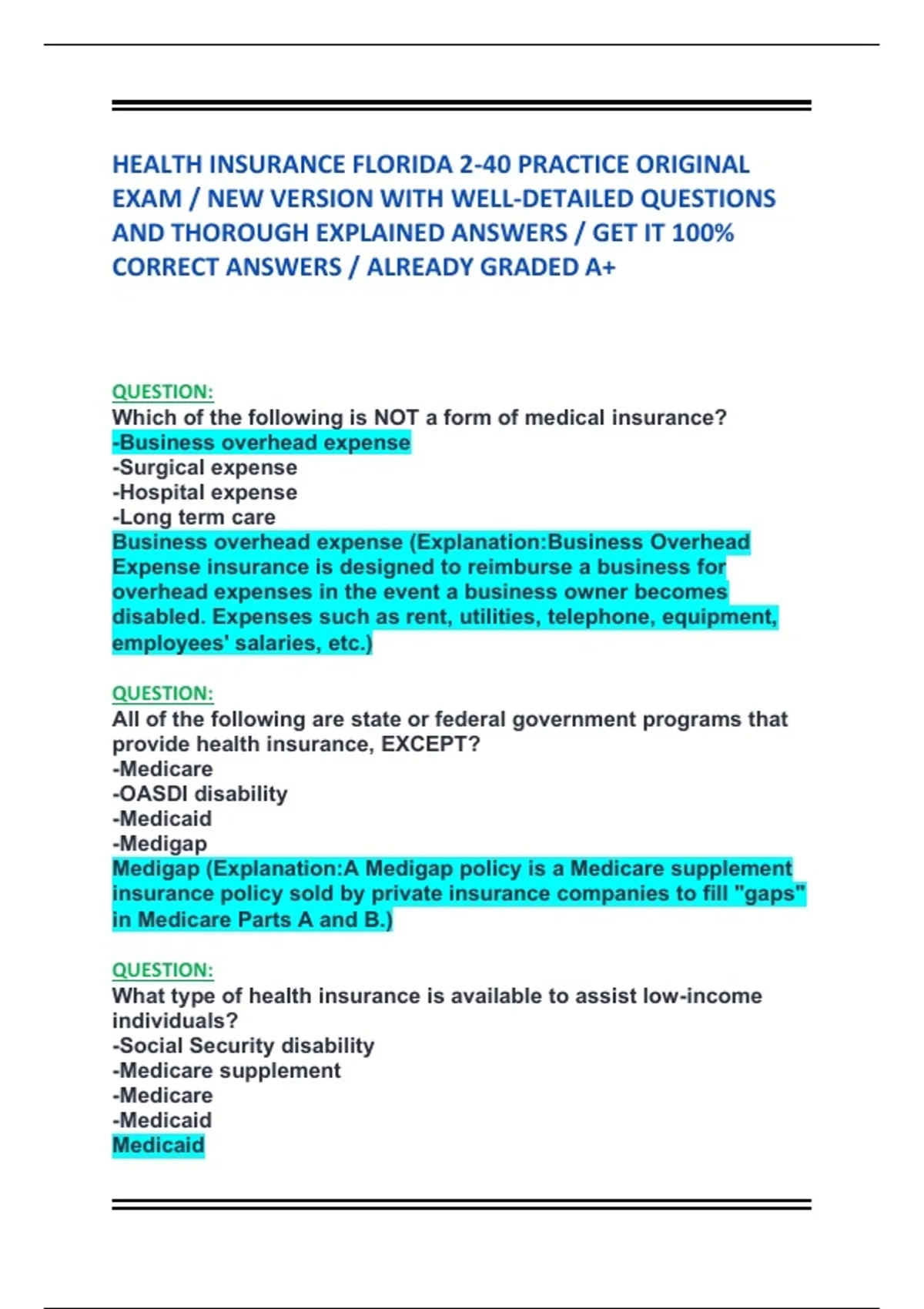 HEALTH INSURANCE FLORIDA 2-40 PRACTICE ORIGINAL
