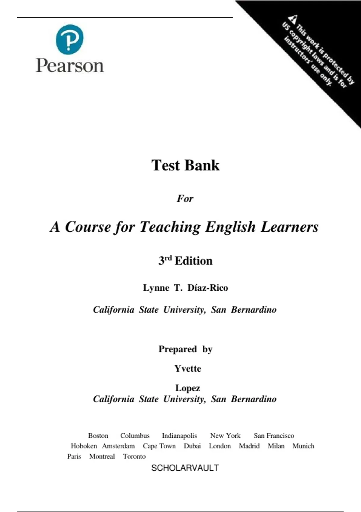 A Course for Teaching English Learners (3rd Edition) – Lynne T. Diaz-Rico | Complete Test Bank | Latest Edition.